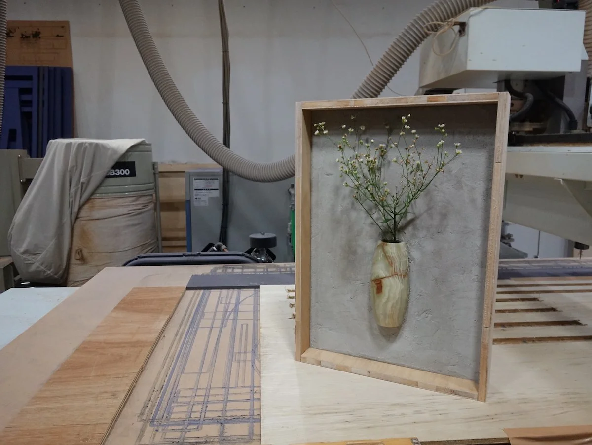 「オニキスを使った何かを作って欲しい」というオファーから製作した、照明・一輪挿し